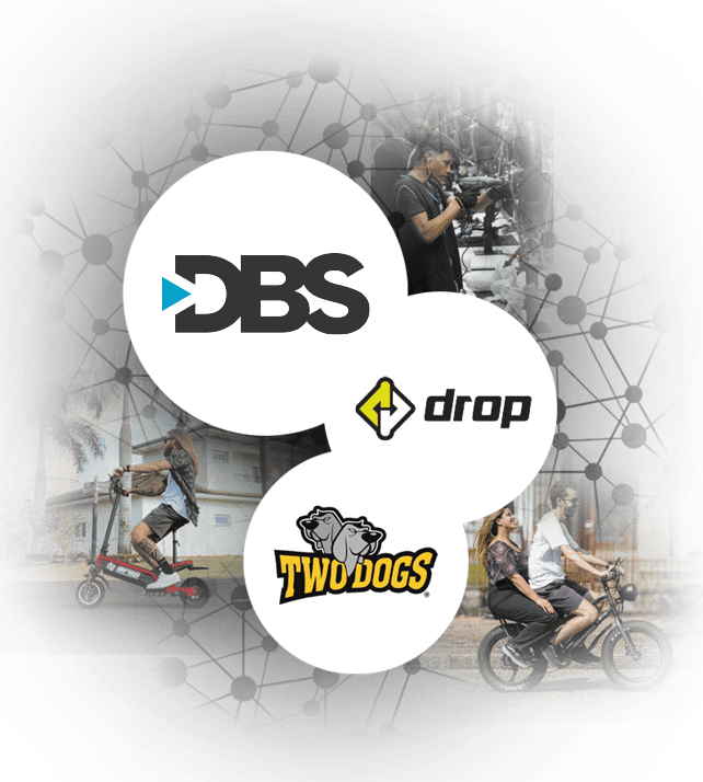 As empresas brasileiras Two Dogs e Drop, pioneiras no mercado de mobilidade elétrica, inovação e sustentabilidade, compõe o Grupo DBS. Juntas, entregam uma maior diversidade de produtos e investimentos na sustentabilidade e inovação de equipamentos elétricos de marcas nacionais. Com uma fábrica conjunta em Manaus, a Two Dogs e a Drop somam 200 pontos de venda e contam também com 150 assistências parceiras.
